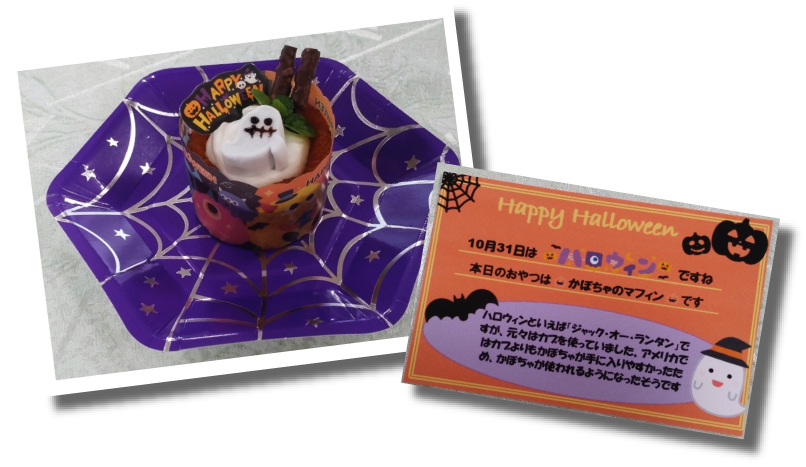 ハロウィン 2025年11月6日 🎃ハロウィン🎃 10月31日はハロウィンにちなんでおやつに【かぼちゃのマフィン】を作りました。 かぼちゃにはβカロテンや食物繊維が豊富に含まれており、妊娠中の免疫力アップや便通の改善にもおすすめです。 季節を感じながら、ほっと一息つける時間を過ごしていただけたら嬉しいです。