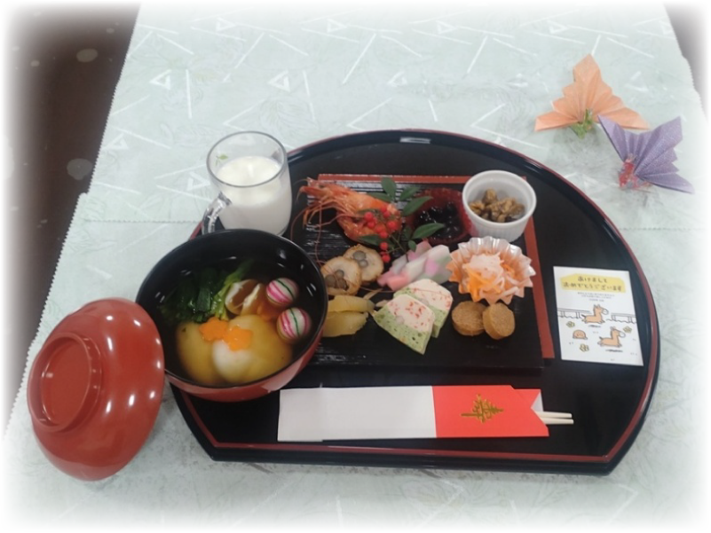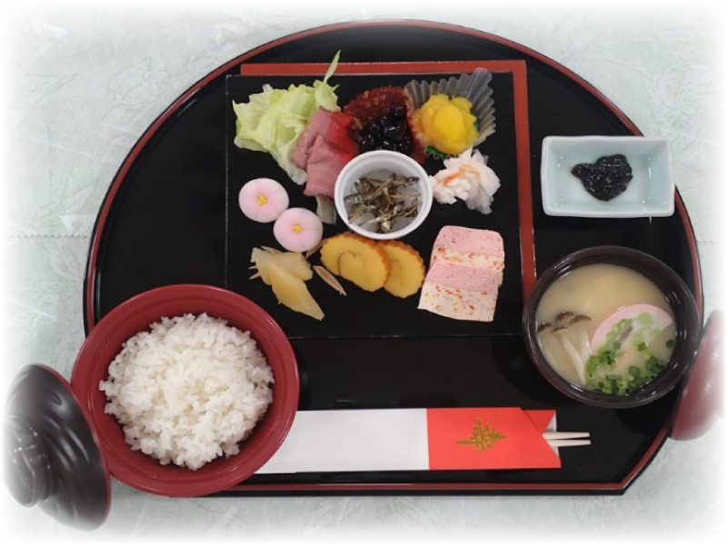 お正月は、お雑煮とおせち料理を朝食で召し上がっていただきました。