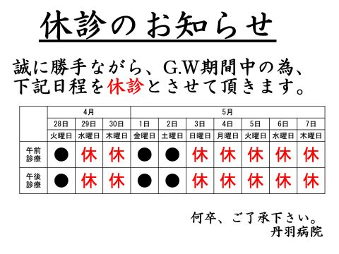 都合により金曜外来担当医師の大岡先生が下記日程は休診日となります。2026年3月6日(金)当日は丹羽先生の診察 ...continue reading 大岡先生休診日のお知らせ